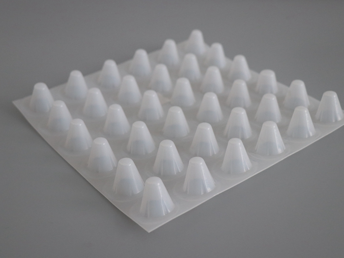 采用擠出吸附等特殊工藝壓型成封閉突起的柱狀、半錐狀殼體,形成一種膜、殼連續,具有立體空間和一定支撐剛度,液體和氣體可以在其內流動排泄的板材。是一種潛在功能很多的功能性材料,使用中很方便地構筑出架空層,形成排水、排氣通道,達到隔音、隔振的功能。在土木建筑工程領域中可廣泛用于建筑屋面系統的層內架空、種植屋面的排水透氣,建筑地下室防水系統的排水保護,室內地面的防潮隔熱保護,公路鐵路隧道的排水保護等。在城市土地、空間、材料資源日益珍貴的今天,塑料排水板提供更有價值的選擇。