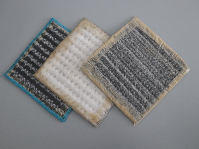 一體化——防水材料和對象的一體化:鈉基膨潤土遇水時,具有20—28倍的膨脹能力,即使混凝土結構物發生震動和沉降,GCL內的膨潤土也能修補2mm以內混凝土表面的裂紋。