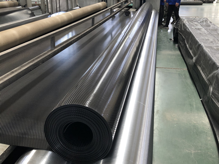 HDPE雙柱點(diǎn)糙面土工膜,該生產(chǎn)工藝所生產(chǎn)的產(chǎn)品在保留原樹脂本身具有的優(yōu)異的力學(xué)性能和良好的延伸率及化學(xué)性能穩(wěn)定的基礎(chǔ)上,通過添加一定比例的功能助劑經(jīng)熔融、擠出、壓延、牽伸等工藝加工的合理控制更增強(qiáng)了產(chǎn)品的抗拉、耐磨、耐穿刺性能,功能助劑的配比添加融合,使產(chǎn)品抵抗酸堿,微生物及化學(xué)物的侵蝕功能進(jìn)一步提高該產(chǎn)品的力學(xué)性能比同類普通工藝生產(chǎn)的糙面防滑土工膜高近3倍。膜面柱點(diǎn)由特制模型壓輥壓延而成,柱點(diǎn)分布均勻,美觀,提高摩擦系數(shù),且膜面正反兩面可由不同材質(zhì),不同顏色熱融成一體,在工程應(yīng)用中可根據(jù)地質(zhì)條件、工程要求設(shè)置產(chǎn)品正反面。