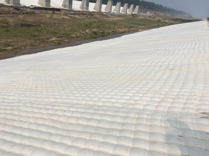 土工模袋可廣泛用于江、河、湖、海的堤壩護(hù)坡、護(hù)岸、港口、碼頭等防護(hù)工程。特別適用于沿江江堤、沿海海岸等區(qū)域的防護(hù)。
